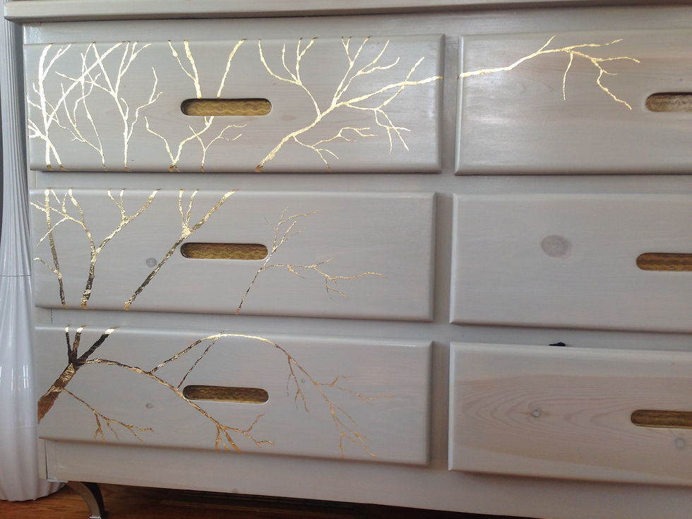 6. You may now add handles of your choice or decorate your furniture. I added tree branches using gold leaf – I think, overall, the project was a big success!